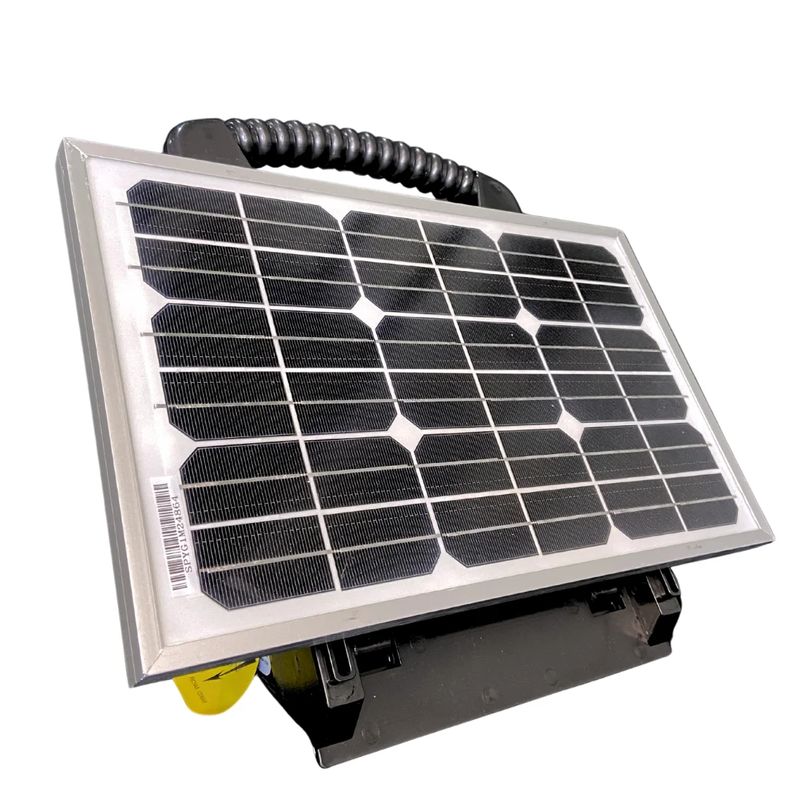 cercas elétricas rurais, especialmente em sistemas móveis e na integração lavoura-pecuária-floresta (ILPF). Totalmente autônomo, opera exclusivamente com energia solar, oferecendo mobilidade, eficiência e praticidade no manejo.