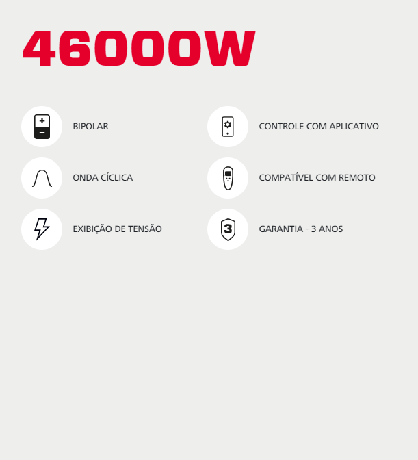 - Potência máxima: Até 46 Joules (em resistência de 33 Ω)