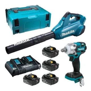 Kit Ferramentas a Bateria 18V + Soprador + Chave de Impacto + 4 Baterias Makita